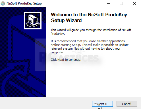 - Suivez les indications de l'assistant pour installer ProduKey.